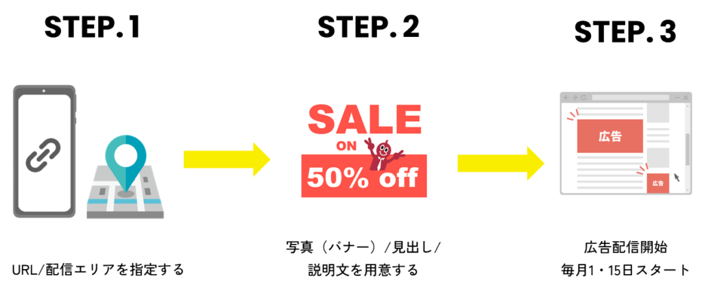 google社が提供するレポート効果測定で「ターゲットURL」ごとに「何回表示され」「何回クリック」されたかが分かります。毎月、ターゲットURLやバナーの変更が可能です。